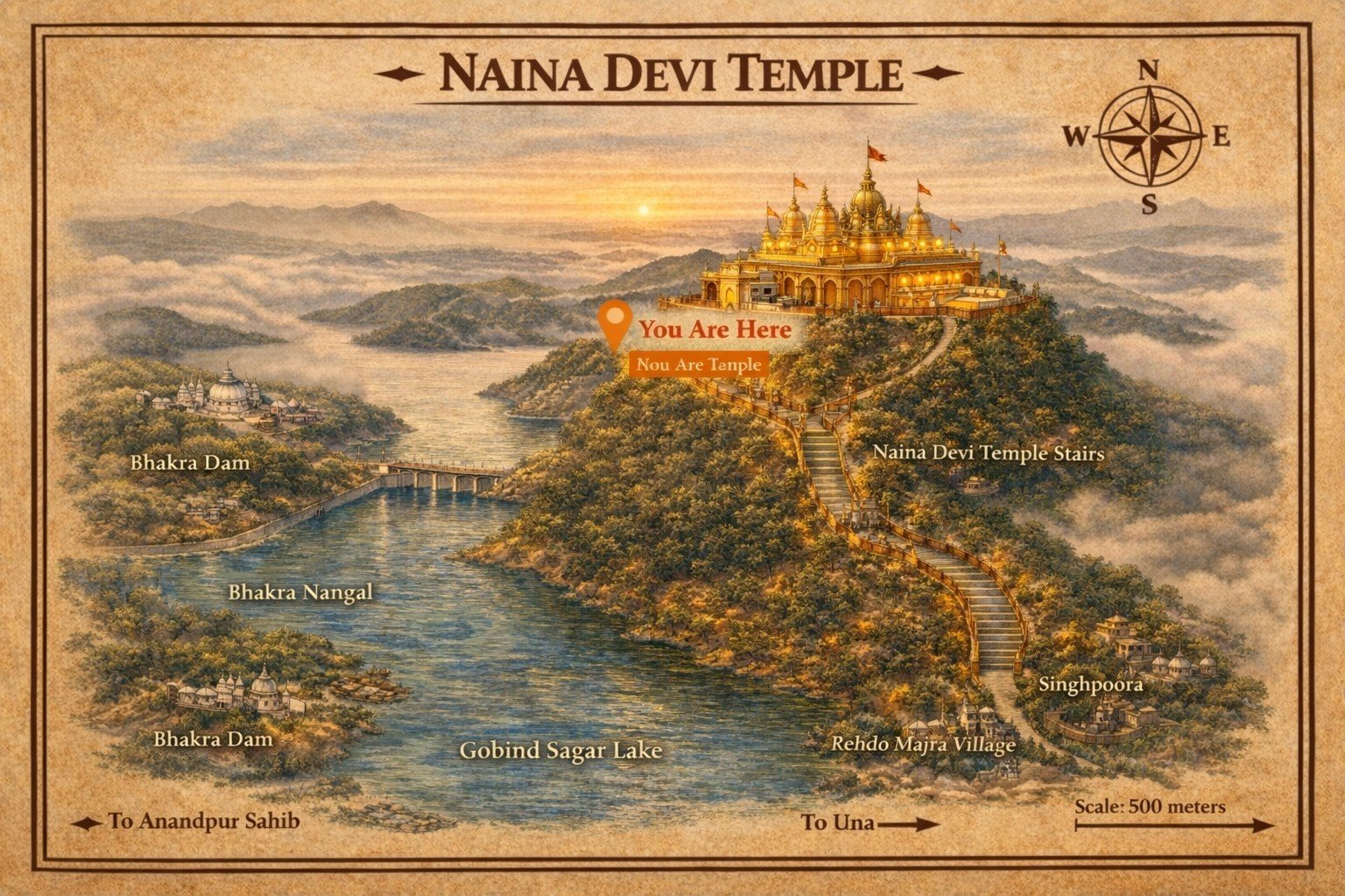 One of the most sacred Shakti Peethas perched atop Naina Hill. A divine blend of spiritual power and natural beauty overlooking Gobind Sagar Lake.
