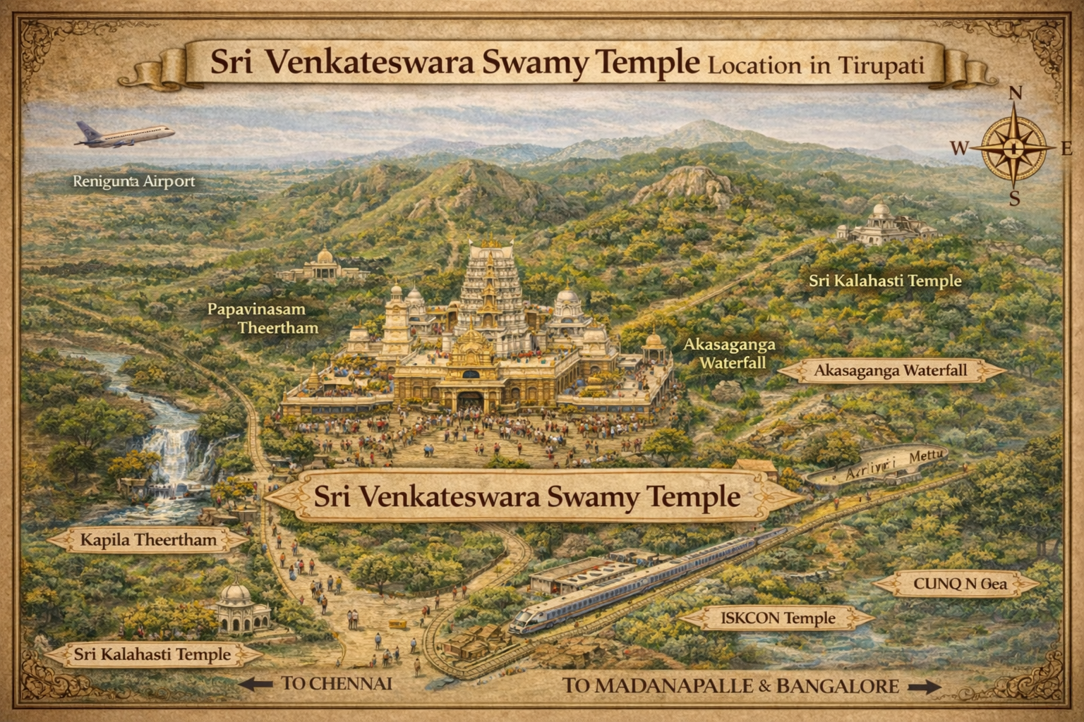Sri Venkateswara Swamy Temple, located atop the sacred Tirumala Hills in Tirupati, Andhra Pradesh, is one of the richest and most visited Hindu temples in the world. Dedicated to Lord Venkateswara (Balaji), an incarnation of Lord Vishnu, the temple is a supreme center of Vaishnav devotion and faith. Millions of devotees visit Tirumala every year to seek the blessings of Lord Balaji for prosperity, peace, and spiritual fulfillment.